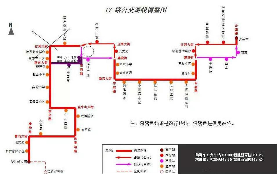 經(jīng)與公共事業(yè)局道路維修部門溝通得知,新華路沿線新興大街至遼河大街路段封閉施工,根據(jù)公共事業(yè)局施工部門所提供的封閉施工路段,現(xiàn)對公交17路部分路段進行調(diào)整。具體安排如下: