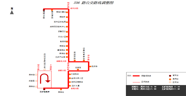 澄湖西路沿線“乘降站”(營口匯豐工程機(jī)械制造公司)、進(jìn)步路沿線“進(jìn)步路”雙向站位、澄湖西路沿線“大族冠華”、“金湖水岸小區(qū)”、“自貿(mào)區(qū)管委會(huì)”、“五礦大廈”雙向站位,共計(jì)6處。(附:236路公交路線調(diào)整圖)