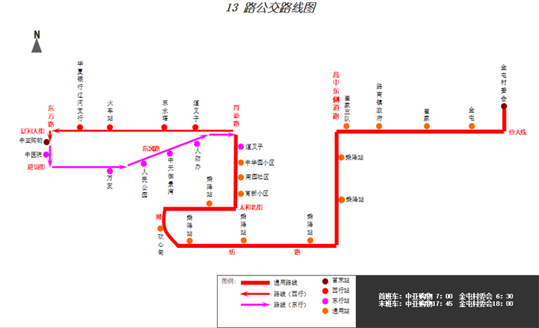 二、公交13路調整內容(附:13路公交路線調整圖)